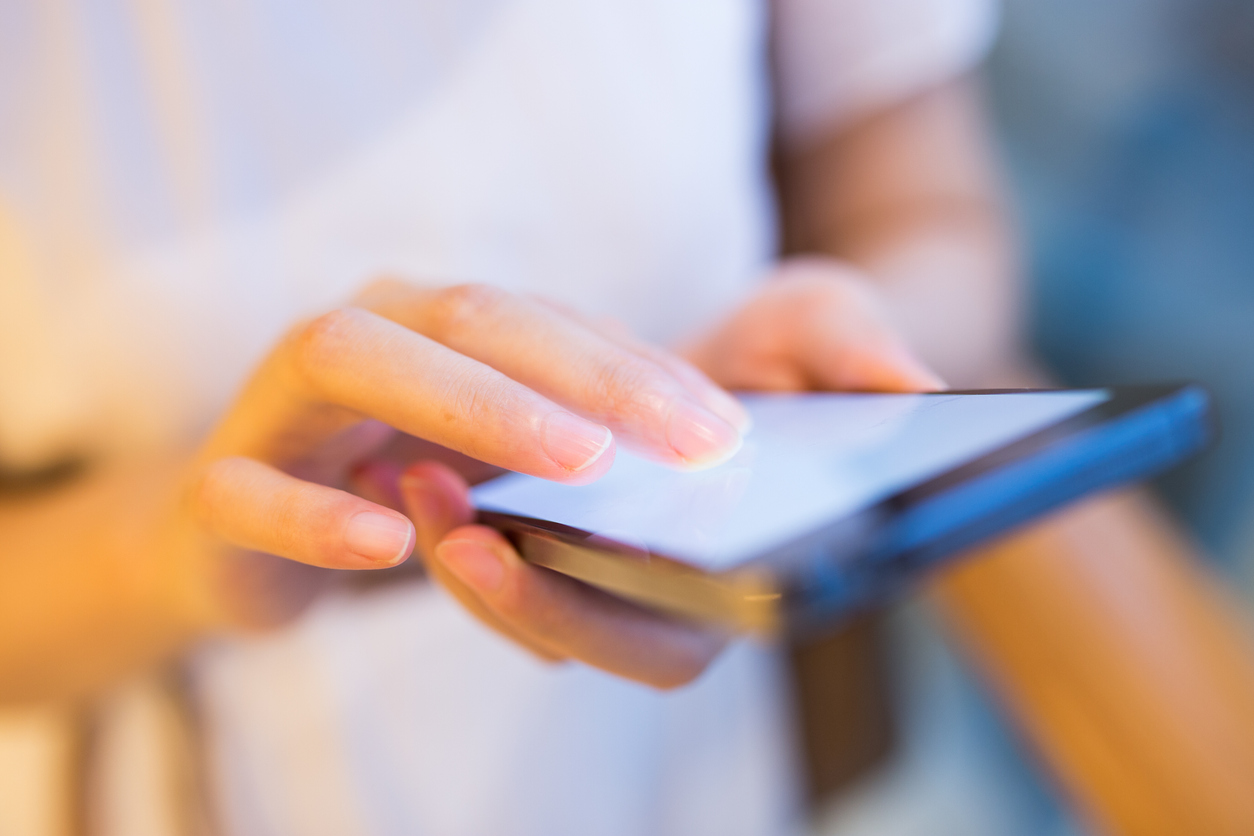 Image of a patient using a phone to engage with a GP practice advanced telephony system.